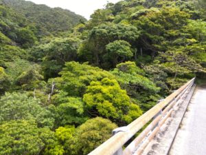 Part2:We go to the Mt. Yonaha trail entrance and walk in a World Natural Heritage forest. You can see wide green mountains covered with shining evergreen trees.
