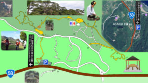 While looking at Asumui Mountain, we walk along a tree-lined road and hear old Okinawan creation stories.