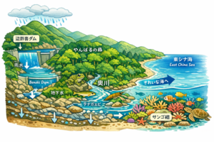 奥川の水は、やがて東シナ海へと流れ出ます。